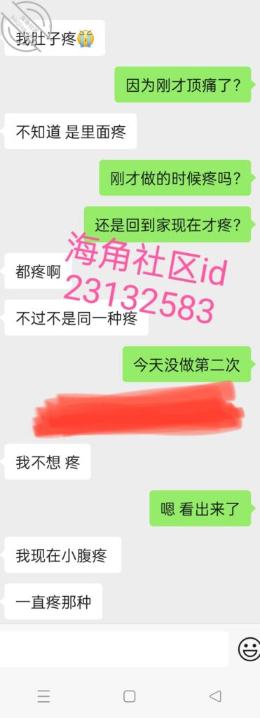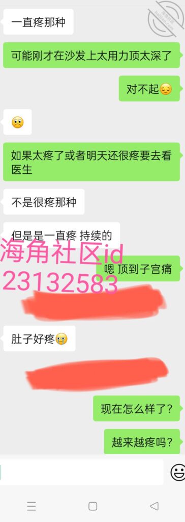 可能鸡巴太长顶到子宫了,她回去之后就说肚子疼,疼了一个通宵,把我吓到了,
